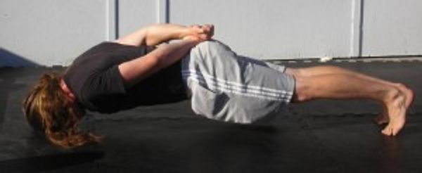 4. Squeeze your chest up to tighten all the muscles of your back. Don’t drop your hips while you squeeze your chest up. This crucial step sets your lumbar spine in normal anatomical extension.